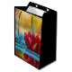En presentväska med ett foto av en damm med en underbar röd lotus blomma på toppen.
