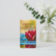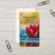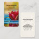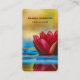 Affärskort med ett foto av en damm med en underbar röd lotus blomma på toppen.