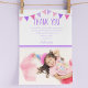 Detta fina rosa och lila tematiska tackkort för barn är ett bra sätt att visa din uppskattning för gäster som deltog i deras födelsedagsfest. Kortet har en rosa och lila tematisk vimpel med texten "TACK", ett mallmeddelande om uppskattning, vem det är från och bara ditt favoritfoto från deras fest! Baksidan är färgad rosa och texten och bilden kan enkelt anpassas.