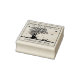 Denna "Från Bokhyllan" gummistämpel har en bild av naturen med en person som läser med sin katt och ett anpassat namn.