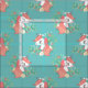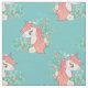 Cute unicorns väv med en mönster vita unicorns med ingerhår och blommor mot en djup turkoshistorik.