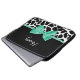 En giraffe i svart och vit giraffe skriver ut 15' laptop sleeve med ett band av söt grönt bundet till en söt bugg. Anpassa trendigets djurutskriftsdesign genom att lägga till ditt namn. Platt utskriven bild, inte verklig båge.