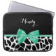 Söt Giraffe Print Mint Grönt Bow med Namn Laptop Sleeve