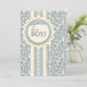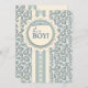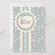 Den vältaliga blå giraffen med inslag i lager skapar en faux-skrapboeffekt i blå och gräddnygg och gör en söt design för en babydusch. När gästerna ser framsidan kommer det inte att råda något tvivel om att ett pojke är på väg, och på baksidan kan alla uppgifter om party anpassas till kostym som du behöver. Skapa ett vackert, samordnat utseende med våra matchande frimärken för porto, favorisera klistermärken och tack för dina kort: