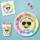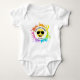 Gör varje födelsedagsbit till en fest med vår gula lyckliga ansikte-aviator babybodysuit. Varje en har ett stort, glatt gult lyckligt ansikte som sportar ett par coola svarta aviatorglasögon, ler från öra till öra och sprider goda vibrationer till alla vid bordet. Den yttre kanten är översållad med färgglada färgburkar och skiktad med gnistrande guldglitter, vilket skapar en festlig, konstnärlig look som säkert lyser upp vilken fest som helst. Anpassa den med ditt barns namn och ålder!