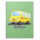 Söt glad gul skolbuss seriefigur anteckningsbok