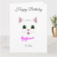 Rolig söt glad festlig katt ansikte Födelsedagskort. Texten kan anpassas för en släkting, vän, syster. lärare, med mera. Katt seriefigur ansikte skapad av Lily Gavilano.