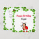 Söt glad nyckelpiga omgiven av tur fyra blad klöver Födelsedagskort. Perfekt för alla. Nyckelpiga är en universell symbol för tur! Bra för barn och vuxna!