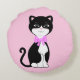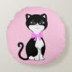 Söt Glad Smokingkatt på Ljusrosa Rund Kudde