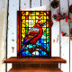 Söt Personligens julkort. Inuti kan du anpassa meddelandet eller underteckna namnen. Fågelfärgad konst av rostat glas.