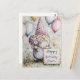 Denna hjärtliga bild visar en charmig gnom iförd en festlig hatt, som håller i en bukett färgglada blommor och en skylt med texten "Grattis på födelsedagen mamma". Omgiven av glada ballonger och boende i en fantasifull trädgård, utstrålar denna bedårande gnom en känsla av värme och glädje.