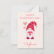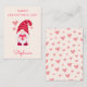 Söt Alla hjärtans dag-kort för klassrummet med en illustration av en söt gnome som håller ett hjärta. Anpassa framsidan av Alla hjärtans dag-kortet genom att lägga till en personlig hälsning och ditt namn. Baksidan visar ett rosa hjärtmönster.