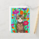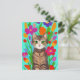 Söt grå katt med färgglada blommor vykort