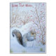 Den här söta vinterplatsen i snö visar en söt liten grått-ekorren sitta bland snö täckta shruber och gräs, han har hittat en buske täckt i röda vinterbär och njuter av en nobbel på sin lyckliga fynd. Detta söta ekorrekonst i snö är mycket lockande för kallets vintermånader på den engelska landsbygden, men dess riktighet kan uppskattas hela året också. Vintervildlivet bild i den här hungriga lilla grått-ekorren gör ett original av julklappskort och jag är säker på att den här söta bilden kommer att ge leenden till vänner och familj eller vem du än skickar det här anteckningskortet till. Det här är anpassadets anteckningskort som du kan använda för att anpassa det med ditt eget hälsning och meddelande på framsidan och insidan av det här bildkortet. Bild på det här originalanteckningskortet är ett dokument som är tillverkat av min ursprungliga vattenfärg med titeln "A Winter Feast".