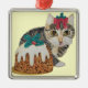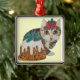 Söt grått kitten tabby katt, klädd till julklump julgransprydnad metall