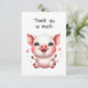 Söt gris och rosa hjärtan platt tackkort tack kort