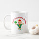 Söt grön alv som håller en shamrock kaffemugg