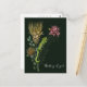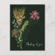 Låt någon veta att du tänker på dem med detta söta vykort med en unik botanisk illustration som visar en dvärgkameleont på Kap i en bukett proteor eller på en djupgrön bakgrund. Illustrationen ritades för hand med penna och bläck och målades sedan digitalt. Den inspirerades av Sydafrikas fantastiska flora och fauna.