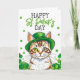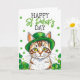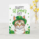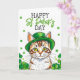 Söt grön katt med shamrocks St Patrick's Day Kort