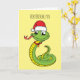 Denna söta gröna ormen är redo för julfirande! Tecknad i en rolig seriefigurstil.