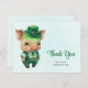 Tack-kort med en söt grön illustration av en gris som står upp på bakbenen, iklädd fin hatt, väst och byxor. Mycket bedårande.