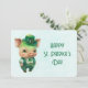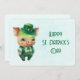 St. Patrick's day platt kort med en söt grön illustration av en gris som står upp på bakbenen, klädd i fin hatt, väst och byxor. Mycket bedårande.