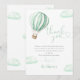 Denna charmiga baby shower tackkort har en söt grön varmluftsballong och moln, tillsammans med elegant script typografi. Designad av Thisisnotme