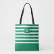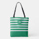 Söt grönrandig monogram strand tygkasse