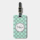 Söt Grönt och Grått Quatrefoil Monogram Namn Bagagebricka