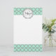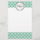 Söt Grönt och Grått Quatrefoil Monogram Namn Brevpapper