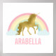 Bedårande barnkammars tryck med en söt vektorillustration av en guldfärgad enhörning och en regnbåge.