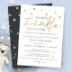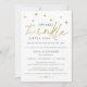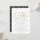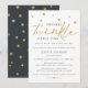 En förtjusande och söt inbjudan till baby shower med stjärnor utspridda längs toppen och ordet "blinkar" i guld med modern seriff typografi. Baksidan av inbjudan är kolgrå med utspridda guldstjärnor.