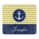 Vackra skärande brädor med nautisk ankardesign, gult och blått rand och anpassningsbar.
