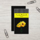 Snyggt dam-affärskort, i svart, med vackra bilder av två gulter. En gult fet rand, ovanför poppierna, och en svart och vit polka mönster, överst på kortet. Baksidan görs i fast svart. Vit, svart och gult text är redo att anpassa med din information. En underbar underbar för ett yrke eller en affär.