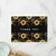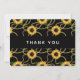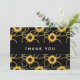 Tack kort med elegant och snyggt mönster. Söt gult solblommor och grönt löv omges av känsliga guld-kedjor. Svart bakgrund.