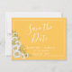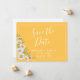 Söt Spara datum meddelande har vattenfärgsvit daisy i hörnet på daffodil gult med vit anpassade i modernt typsnitt