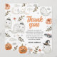Bedårande akvarell Halloween födelsedag tackkort med söta spöken, pumpor och pastell detaljer. Perfekt för att skicka festlig tacksamhet till dina gäster.