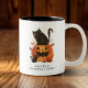 En söt illustration av katter och jack-o-lanterns framhäver denna kaffekopp för Halloween.