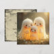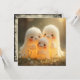 Tre bedårande spökliknande varelser med rosiga kinder och leende ansikten står tillsammans i ett mjukt, lysande ljus för en Halloweenfest.