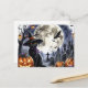 Det här Halloween-kortet är idealiskt för svarta katt-enthusiaster, med en charmig häxlik katt omgiven av jack-o'-lanterns, ett spöklikt träd och fladdermöss. Det är ett förtjusande kort för barn eller alla som uppskattar Halloween och det mystiska i svarta katter.
