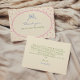 Kortet kommer i ett roligt färgschema av rosa, dammig blå och grön på en smörkrämfärgad bakgrund.