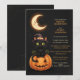 Bjud in dina gäster till en spöklik celebration med denna bedårande Halloween-design. Med en charmig svart katt i en häxhatt som sitter på en urholkad pumpa under en halvmåne, är denna design perfekt för en rolig, inte alltför skrämmande fest. Anpassa enkelt med alla dina evenemangsuppgifter.