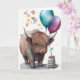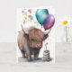 Söt Highland Ko Watercolor Födelsedagsballonger Kort