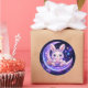 Den här söta himmelska påskharen runda dekalen har en bedårande kawaii-kanin som sitter på en lysande måne omgiven av gnistrande stjärnor. Designad med en drömlik estetik, blandar denna dekal mjuka kaninillustrationer med himmelska element, vilket gör den perfekt som påskpresent, vårdekor och för daglig användning.