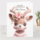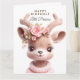 Söt hjort, babyhjort i rosa klänning med blommor Kort