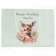Presentförpackning med en vacker illustration som visar en söt hjort. Omgiven av rosa rosor och blommor.