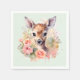Pappersservetter med en vacker illustration med en söt hjort. Omgiven av rosa rosor och blommor.