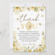 Skicka en hälsning med tacksamhet med detta matchande tackkort "Lilla Honung". Dekorerat med den signerade akvarellsbilden av bikupan och ömt blommande vilda blommor, är det det perfekta slutet på din fest. Den eleganta guldsnittningen och de botaniska detaljerna speglar skönheten i din trädgårdsfest. Lämna ett bestående intryck med ett handskrivet meddelande till vänner och familj efter din söta milstolpe.