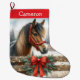 En söt brun häst bakom ett skorstensstängsel av trä med en röd båge och en personlig av andedräkt.