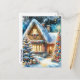 Personlig julkort. Söt festhus med Julgranar och ett snö täckte vattenfärgen stil ai i tak.